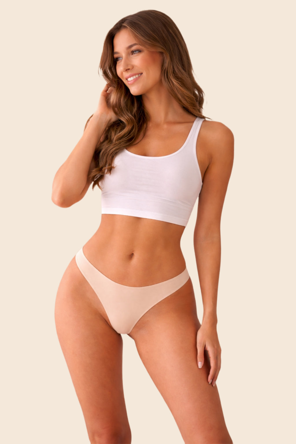 Conçues pour disparaître sous les vêtements, ces culottes invisibles effet soie glacée offrent un confort seconde peau idéal au quotidien. Leur matière lisse et légèrement brillante épouse parfaitement les formes sans créer de marques visibles, même sous des vêtements moulants ou clairs.